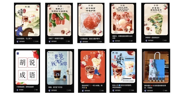 筆者選擇了瑞幸和海底撈這兩家玩法差不多的品牌,從產(chǎn)品開發(fā)、禮品創(chuàng)意、傳播的角度來看與長安的荔枝的深度聯(lián)名合作。