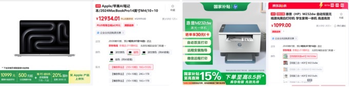活動(dòng)期間,用戶選購MacBook Pro 2024款 14英寸可享20%至高2000元國家補(bǔ)貼;惠普M232dw激光打印機(jī)可享國家補(bǔ)貼至高直降15%;三星Galaxy S24 Ultra購機(jī)即享立省2300元,以及1年延保等多重禮遇;還有HUAWEI Mate X6領(lǐng)券優(yōu)惠1000元再享12期免息,另有學(xué)生專屬福利100元。