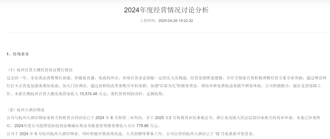 根據百大集團2024年財報來看,去年杭州百貨大樓實現營業(yè)收入約1.56億;