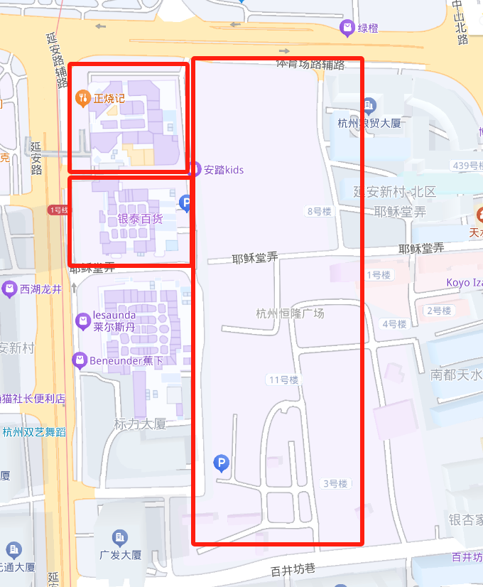 直面杭州大廈、湖濱銀泰、杭州萬象城
