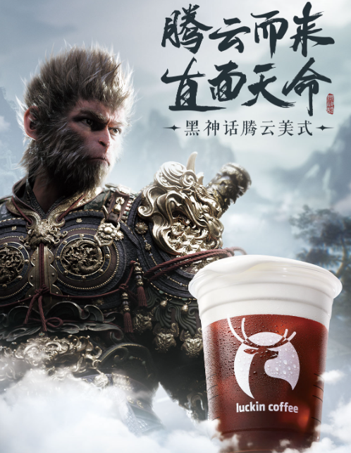這種靈活的效率,也體現(xiàn)在新品和營(yíng)銷(xiāo)上。瑞幸推出奶咖、果咖的周期相當(dāng)短,僅2023年就推出超過(guò)100種新品,這為“爆款”的誕生提供了有機(jī)土壤。而與茅臺(tái)、《黑神話:悟空》等產(chǎn)品的聯(lián)名,也常常引領(lǐng)了市場(chǎng)熱潮。