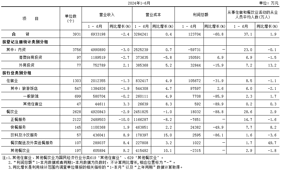 北京統(tǒng)計局數(shù)據(jù)顯示,2024年上半年,北京限額以上(即年主營業(yè)務(wù)收入200萬及以上)餐飲企業(yè)營收為492.1億元,與去年同期相比下降了2.9%。同時,這些企業(yè)的利潤總額僅為1.8億元,同比大幅下滑88.8%,利潤率更是低至0.37%。