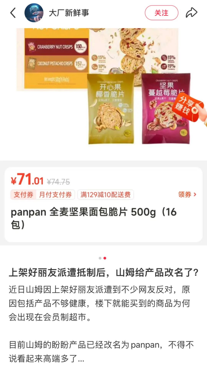 山姆貨架上的好麗友派像個刺眼隱喻:當會員發(fā)現(xiàn)260元年費換來的“嚴選”,竟是便利店同款換英文馬甲(盼盼變“panpan”,衛(wèi)龍隱去標識),信仰崩塌的荒誕感便化作社交網(wǎng)絡的群嘲。