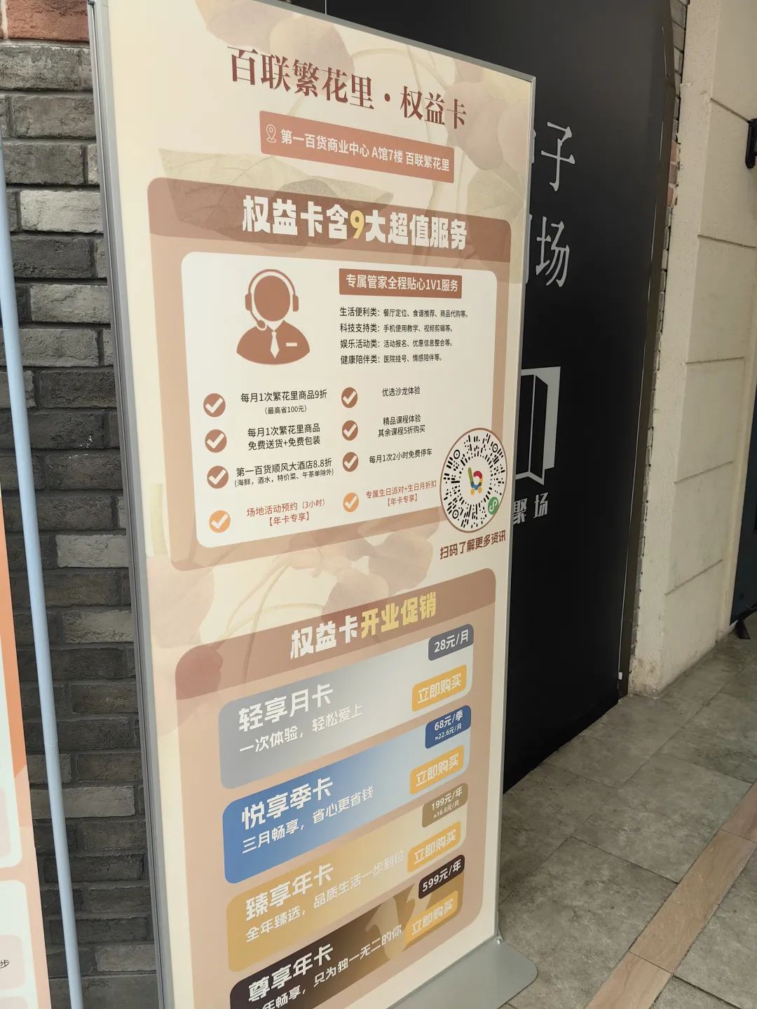 權(quán)益卡涵蓋了1V1管家服務(wù)、商品購(gòu)物優(yōu)惠、課程沙龍?bào)w驗(yàn)、停車優(yōu)惠以及同樓層內(nèi)順風(fēng)大酒店的餐飲優(yōu)惠。地處南京路步行街,第一百貨具有天然的客流導(dǎo)入優(yōu)勢(shì)。