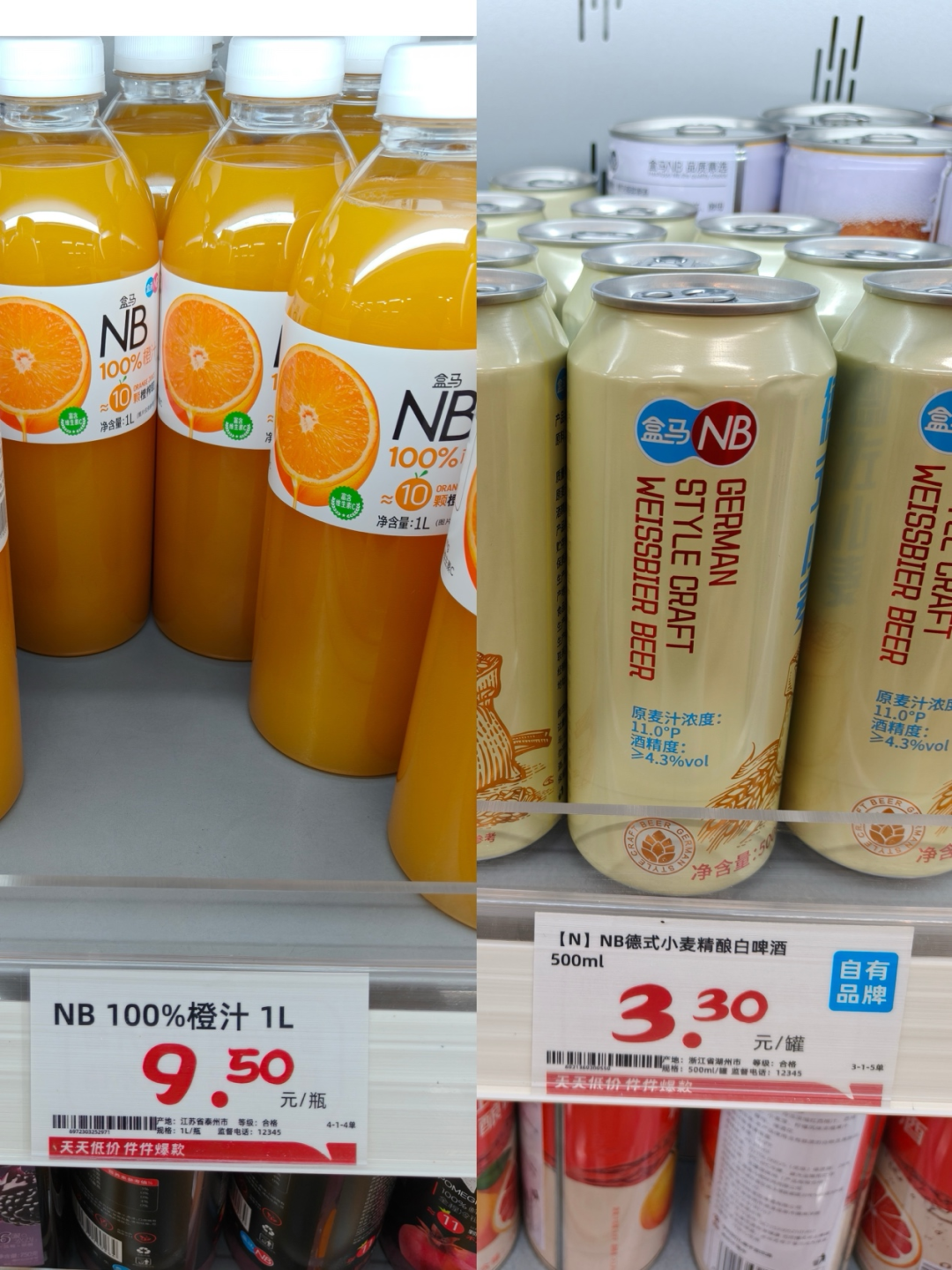 左為盒馬NB,右為奧樂齊