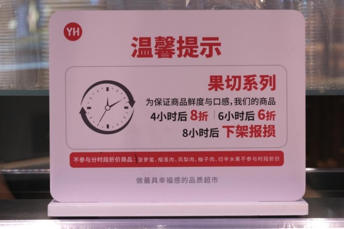 食品安全是本次調(diào)改的重中之重。門店嚴(yán)格執(zhí)行商品溯源管理,嚴(yán)查追溯憑證、生產(chǎn)批次檢測報告及第三方檢疫報告,確保商品流向可查、質(zhì)量可溯。對水果實施糖度檢測,不達(dá)標(biāo)批次立即下架退回。新鮮果切嚴(yán)格執(zhí)行“468原則”——切好后超過4小時八折、6小時六折、8小時下架。葉菜、肉禽、水產(chǎn)等鮮度敏感商品,也根據(jù)當(dāng)天情況推行日清折價機制,堅決不售賣隔夜商品,筑牢“舌尖上的安全”防線。