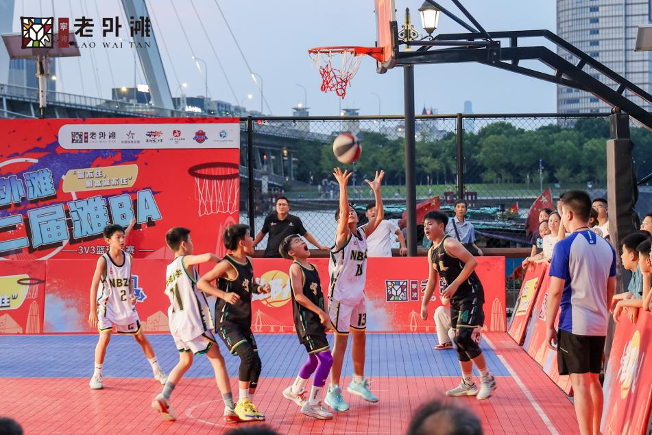 “三分!漂亮!”露天籃球場四周的吶喊震耳欲聾,3v3籃球賽對決精彩紛呈,引來眾多市民駐足觀賽。每當(dāng)球員完成精彩扣籃,圍觀群眾的歡呼聲便如浪潮般此起彼伏,連江對岸的游客都不禁駐足觀望。