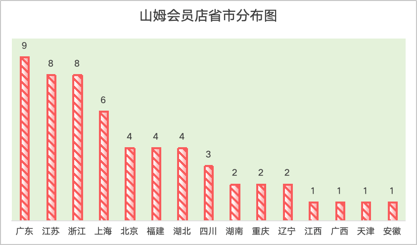 值得一提的是5月和6月份新增的山姆會(huì)員商店中,廣州荔灣山姆會(huì)員商店,北京昌平山姆會(huì)員商店和上海浦東山姆會(huì)員商店三家門店均位于一線城市。