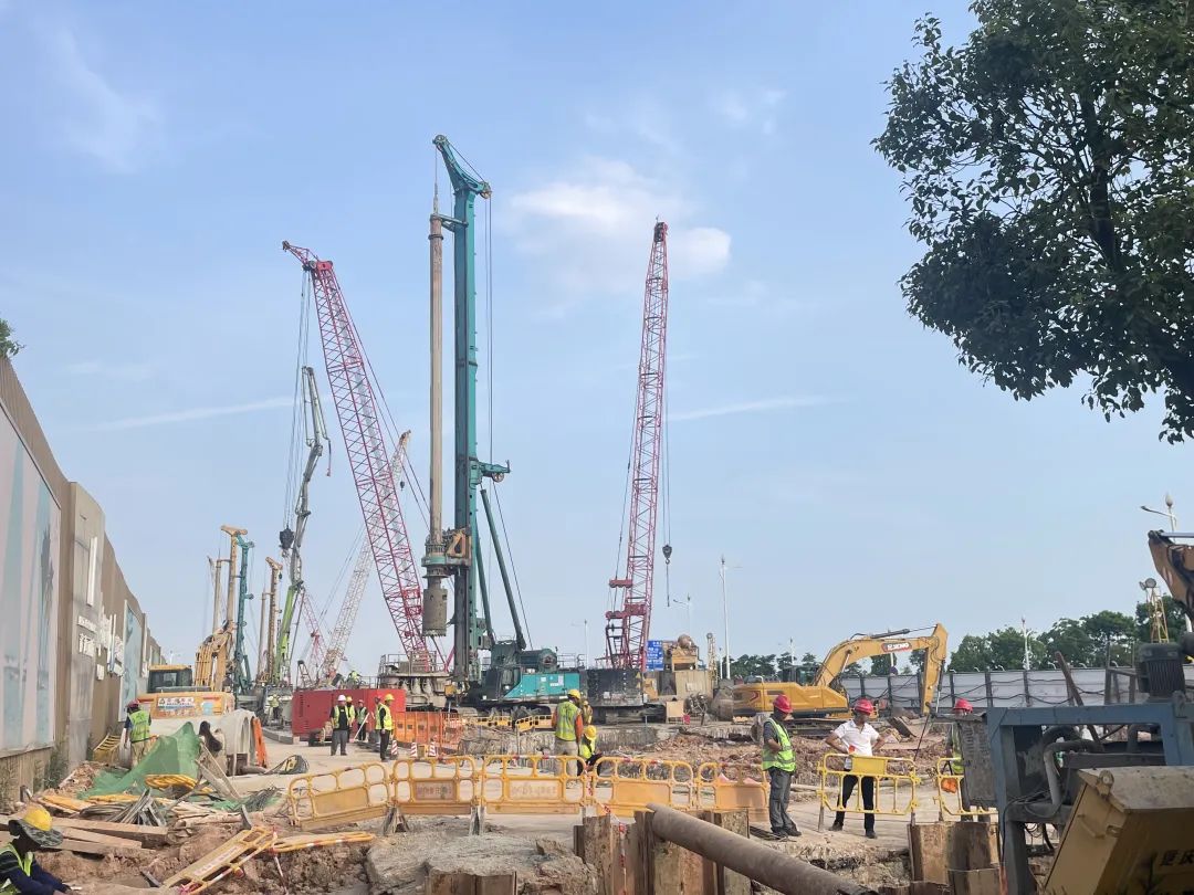 官方預(yù)計(jì)將在2027年開通,目前地鐵站工地現(xiàn)場有多名工人和多臺工程車在火熱施工。