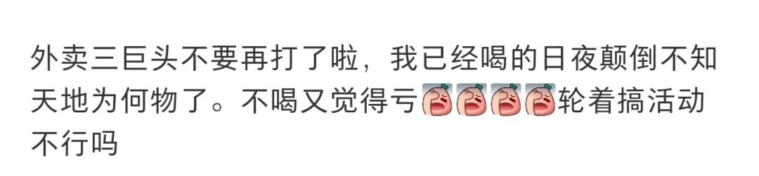 “說(shuō)得直白點(diǎn),我們喝下的是平臺(tái)投資人的錢(qián)+商家的利潤(rùn)+外賣(mài)員的體力+食品質(zhì)量的妥協(xié)!