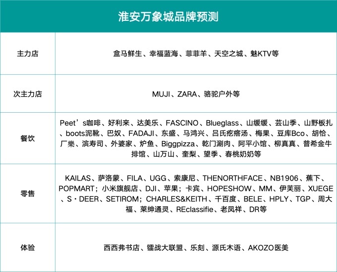 淮安萬象城預(yù)計9月底開業(yè),其入駐品牌在各種自媒體也有一定披露。