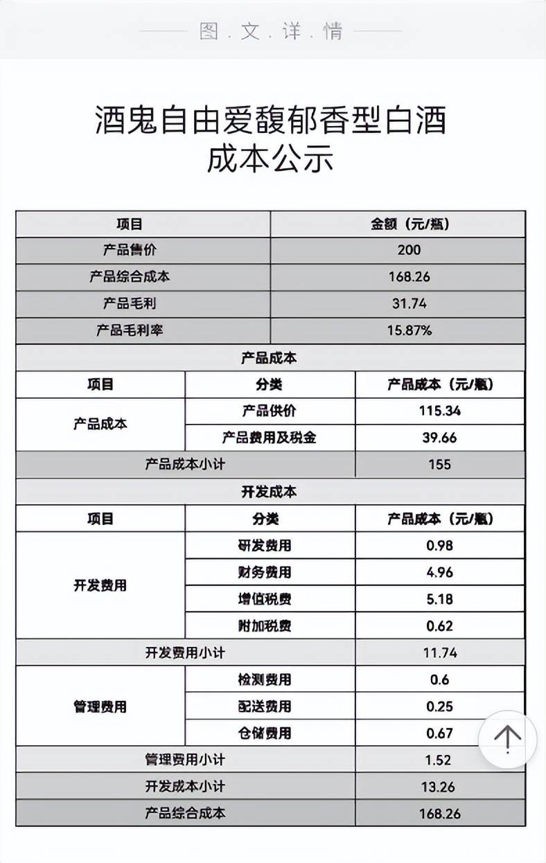 “趣解商業(yè)”注意到,目前,胖東來小程序已經(jīng)上架DL酒鬼自由愛馥郁香型白酒550ml,售價(jià)200元/瓶,7月22日中午顯示已售罄。值得一提的是,胖東來還公示了該產(chǎn)品的成本,綜合成本為168.26元/瓶,產(chǎn)品毛利為31.74元/瓶,產(chǎn)品毛利率為15.87%。