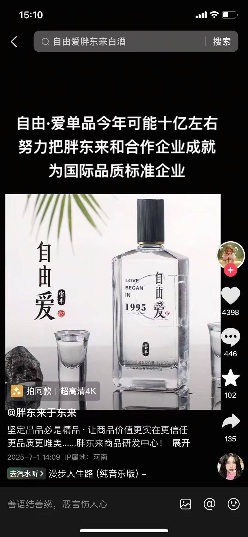 7月19日,酒鬼酒官方賬號(hào)宣布,與胖東來合作開發(fā),52度酒鬼·自由愛馥郁香型白酒正式上市。