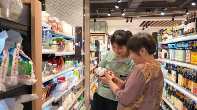 “這種米煮粥軟糯,適合老人家;那款米炒飯粒粒分明……”晚餐補(bǔ)貨高峰期,顧客前來咨詢,何朝竹立刻停下手中推車,細(xì)致講解不同品種的產(chǎn)地、口感和最佳烹飪方式。這份對(duì)商品的熟稔,源于十三載扎根一線的沉淀。從茶葉的沖泡技巧到調(diào)味料的百搭妙用,她如數(shù)家珍。顧客找不到的商品,她總能精準(zhǔn)定位;特殊的需求(如少量分裝),她盡力協(xié)調(diào)解決。