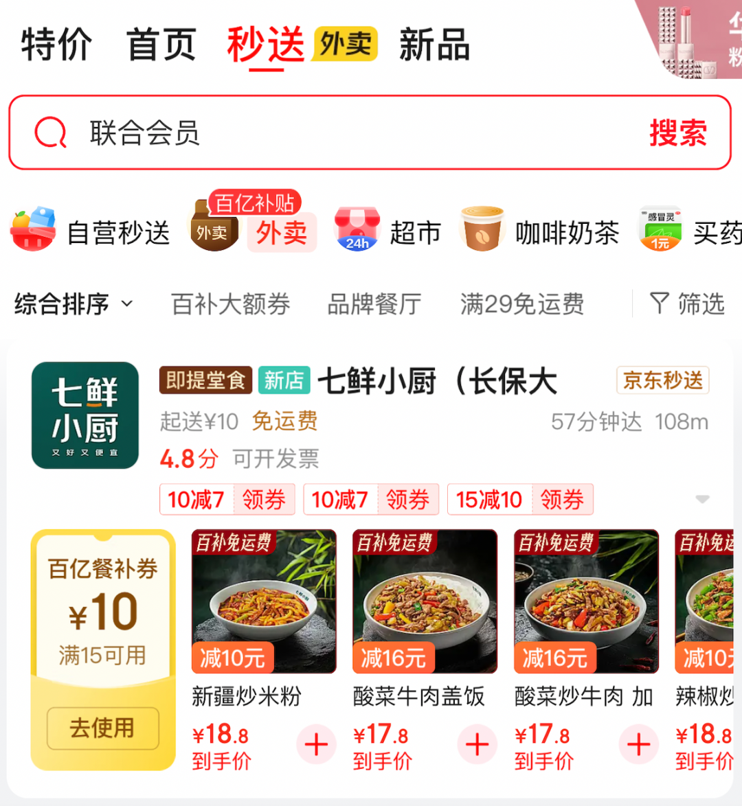 京東其實早就借由七鮮超市在“超市+餐飲”的路上探索了多年。超市里的海鮮加工、現(xiàn)制熟食,本質上都是在練“從供應鏈到餐桌”的能力,現(xiàn)在把這套經(jīng)驗搬到外賣上,算是水到渠成。