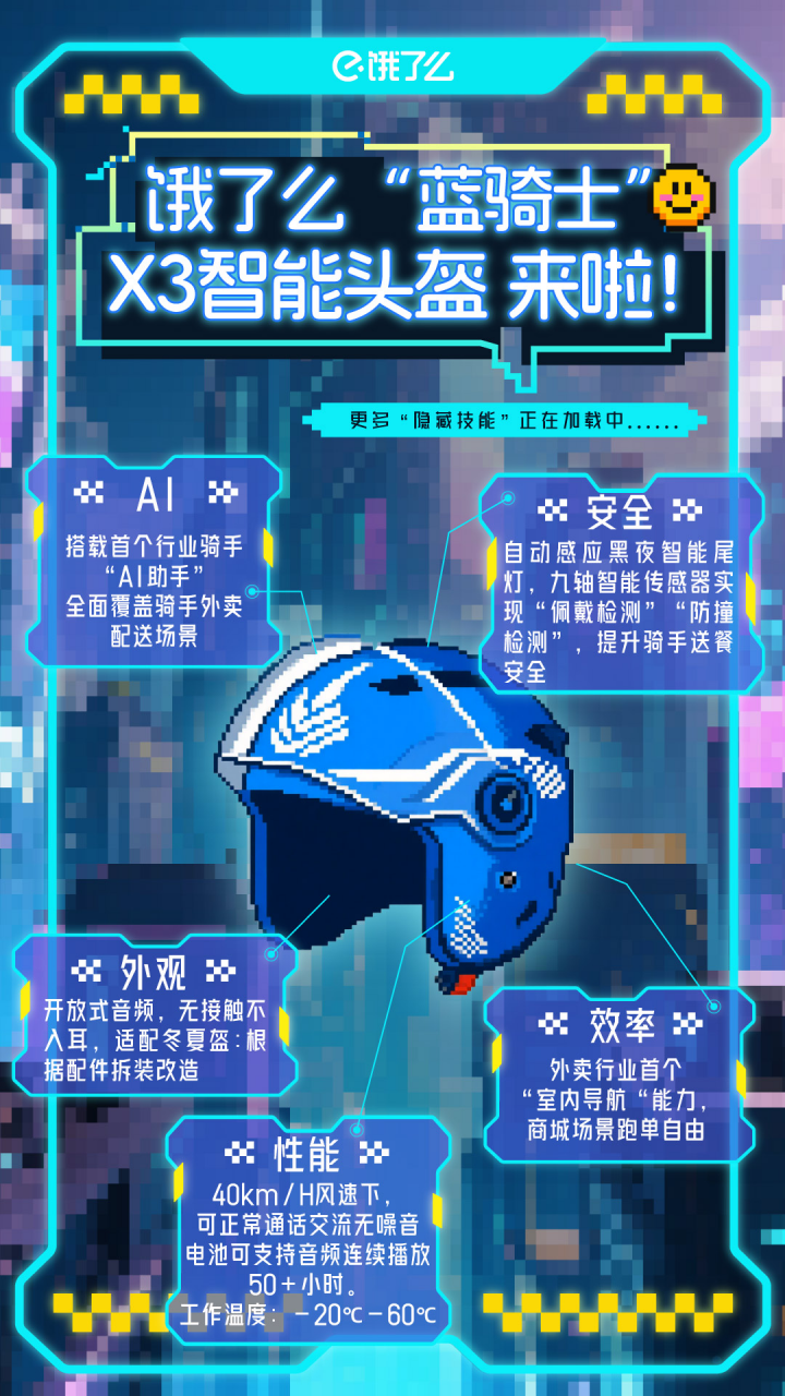 安全提升方面,餓了么智能頭盔X3也尤為亮眼。