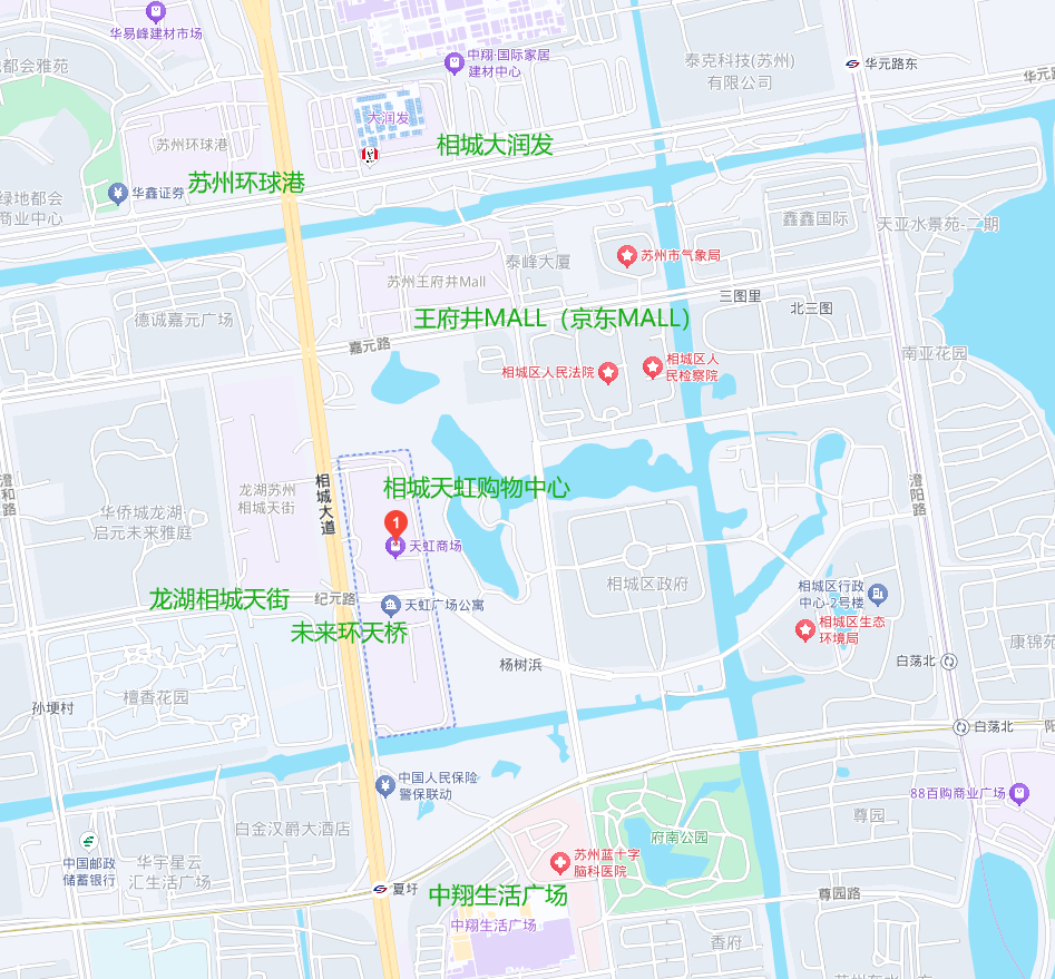 資料顯示,相城天虹廣場(chǎng)前身為蘇州市相城區(qū)元和街道相城大道東、紀(jì)元路南北兩側(cè)地塊(蘇地2013-G-92)。