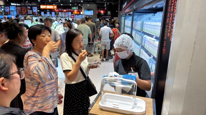 服務(wù)體驗(yàn)的升級(jí)體現(xiàn)在諸多細(xì)節(jié)。瀛海環(huán)宇坊店便民服務(wù)功能得到擴(kuò)充,增加免費(fèi)菊花茶、身高/血壓儀、愛心藥箱以及1小時(shí)免費(fèi)充電寶借用服務(wù),解決居民夏日外出購物時(shí)的各種需求。生鮮加工服務(wù)持續(xù)深化:肉禽區(qū)提供免費(fèi)的切絲、切片、絞肉等定制服務(wù);水產(chǎn)區(qū)嚴(yán)格堅(jiān)持“瀝水稱重、打氧助鮮”的標(biāo)準(zhǔn),并為顧客處理龍蝦、魚類等水產(chǎn)品。在商品信息提示上更加人性化,貨架旁放置放大鏡便于查閱商品信息,連卷袋旁設(shè)置濕手器方便取用。門店還特別設(shè)置了寵物臨時(shí)安置區(qū)和配備了直飲水、微波爐等設(shè)施的顧客休息區(qū),體現(xiàn)了細(xì)致的人性化關(guān)懷。