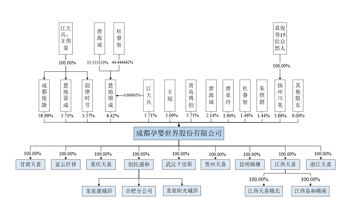 事實(shí)上,不僅是北交所,孕嬰世界家族企業(yè)的屬性也引發(fā)了外界的質(zhì)疑。招股書顯示,孕嬰世界創(chuàng)始人江大兵及其兒子王偉鑒通過直接或間接的方式,共持有公司73.98%的股權(quán),江大兵配偶王瓊持股3.09%。