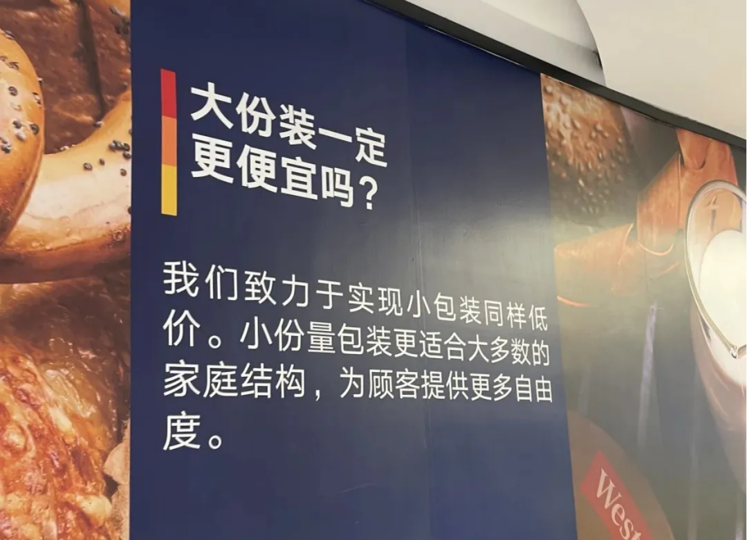 當(dāng)然,小份同樣意味著規(guī)模性和精準(zhǔn)化挑戰(zhàn),特別是客單價(jià)。比如在天虹,一份鮮肉,家庭裝一份可能20元,而個(gè)人份,可能3.99元。像某會(huì)員店,被大量用戶吐槽“還沒吃完就過期了”,超大包裝對(duì)企業(yè)來說「友好的」,有規(guī)模性,對(duì)用戶來說「承擔(dān)浪費(fèi)」。所以,我們要做小份經(jīng)濟(jì),事實(shí)是主動(dòng)舍棄了一些利益誘惑,但企業(yè)能回歸消費(fèi)本真。