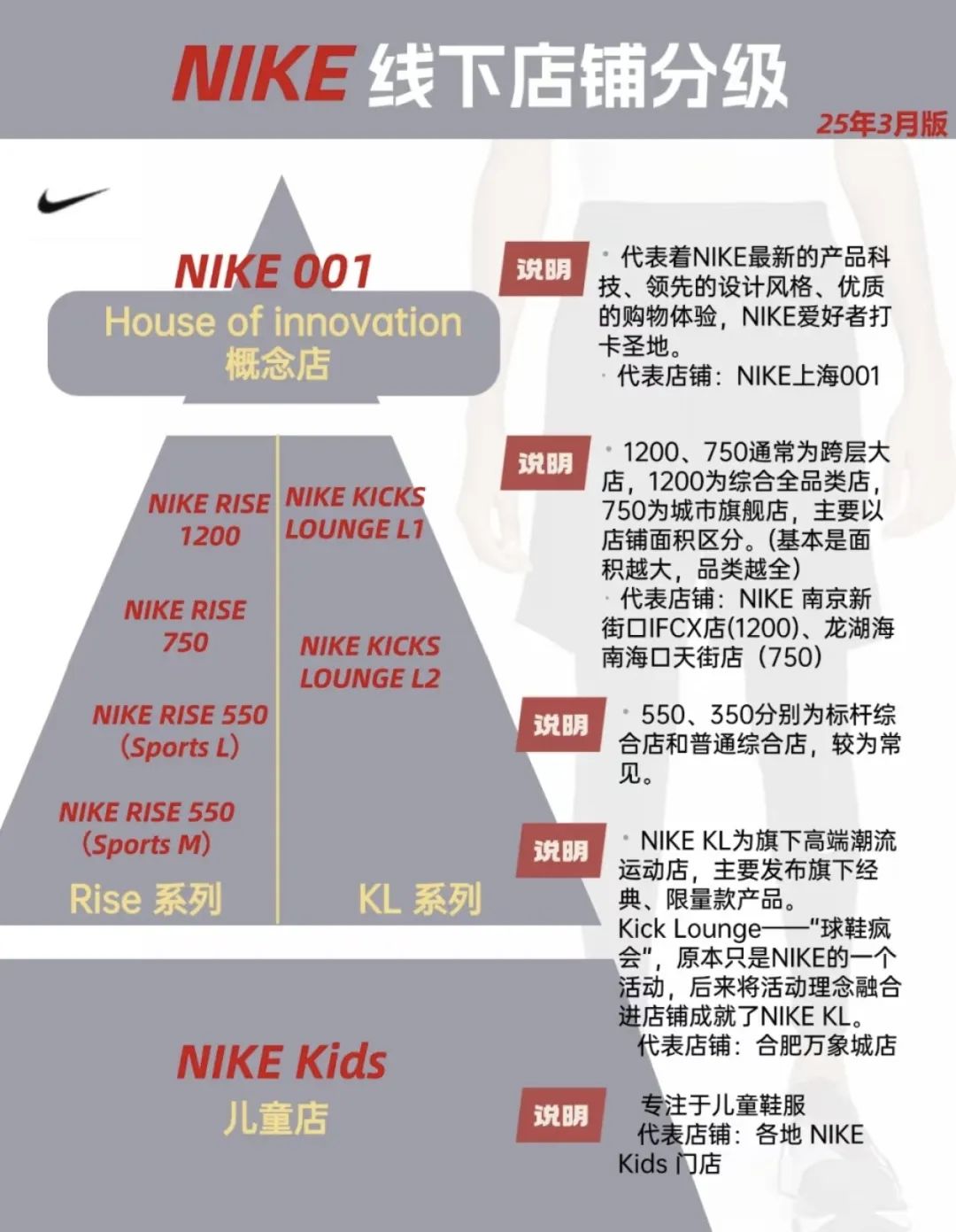 NIKE線下店鋪分級(jí)列表 | 來源:小紅書@Asher商業(yè)觀察