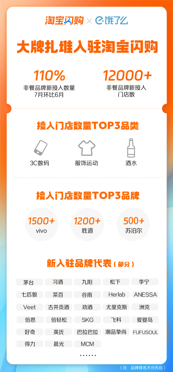 數(shù)據(jù)顯示,品牌加速入駐淘寶閃購(gòu),7月新入駐品牌數(shù)環(huán)比6月增長(zhǎng)110%,新上線非餐品牌門(mén)店超過(guò)12000家。
