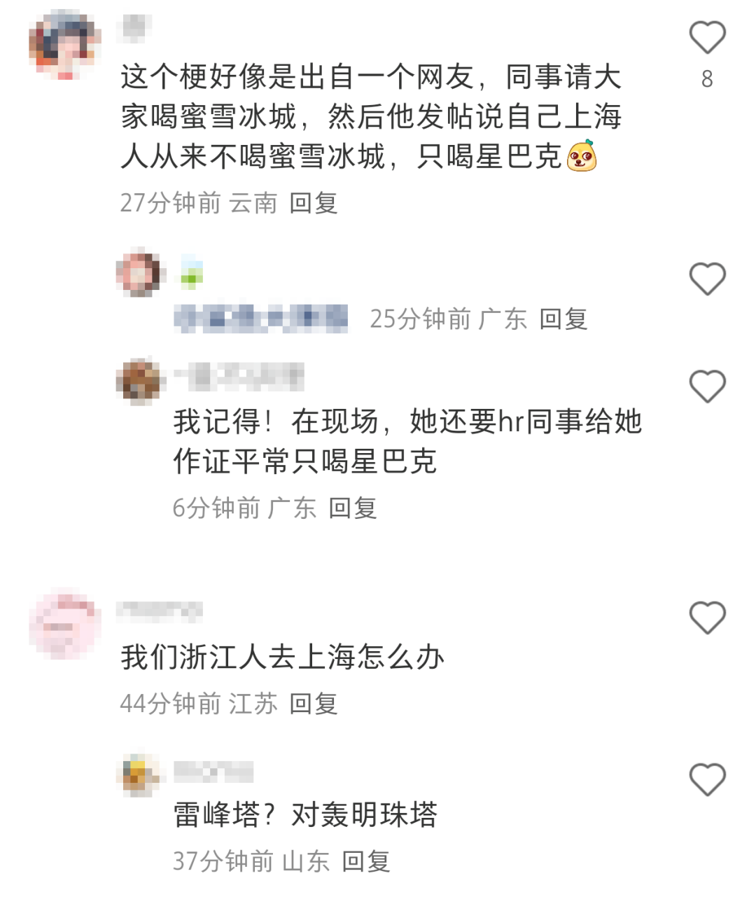 也有人說,其實(shí)這一故事并非由蜜雪冰城和東方明珠主動(dòng)發(fā)起,而是源自一些網(wǎng)友的親身經(jīng)歷。前不久,有網(wǎng)友發(fā)帖稱,“同事請(qǐng)大家喝蜜雪冰城,但自己是上海人,從來不喝蜜雪冰城,只喝星巴克”。
