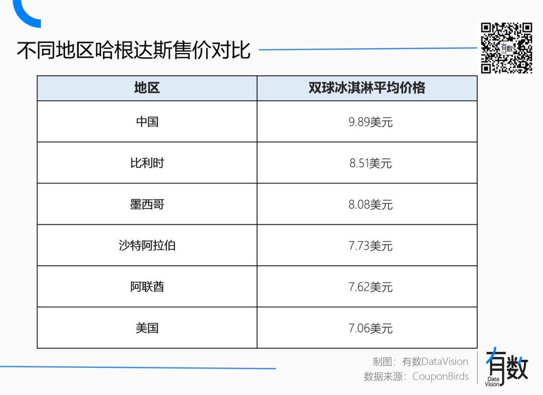 作為第一批進(jìn)入中國(guó)市場(chǎng)的海外消費(fèi)品之一,哈根達(dá)斯從1990年代起就保持著高端定位。時(shí)至今日,哈根達(dá)斯在中國(guó)雙球9.89美元的定價(jià)也是全球最高。