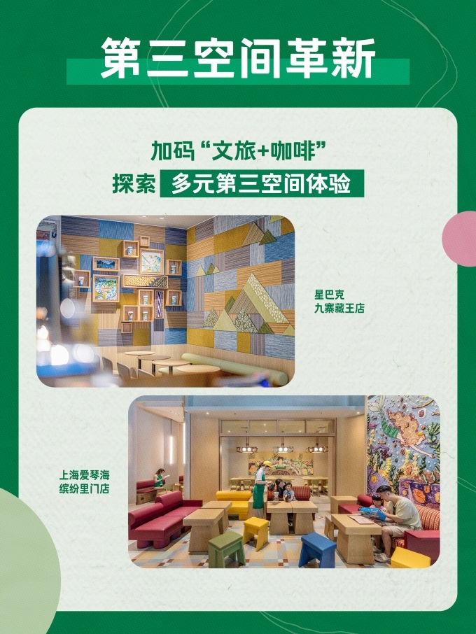 第三空間體驗(yàn)多元化創(chuàng)新:星巴克始終堅(jiān)持與本地文化深度結(jié)合,創(chuàng)造獨(dú)特第三空間的經(jīng)營(yíng)理念。在文旅+咖啡體驗(yàn)上,持續(xù)加碼,開(kāi)出張掖、敦煌、九寨溝等景區(qū)門(mén)店。坐落于上海樂(lè)高樂(lè)園度假區(qū)的上海愛(ài)琴海繽紛里門(mén)店以充滿童趣的設(shè)計(jì)巧思,為大小朋友們打造了妙趣橫生的第三空間,成為星巴克中國(guó)最有童趣的門(mén)店。