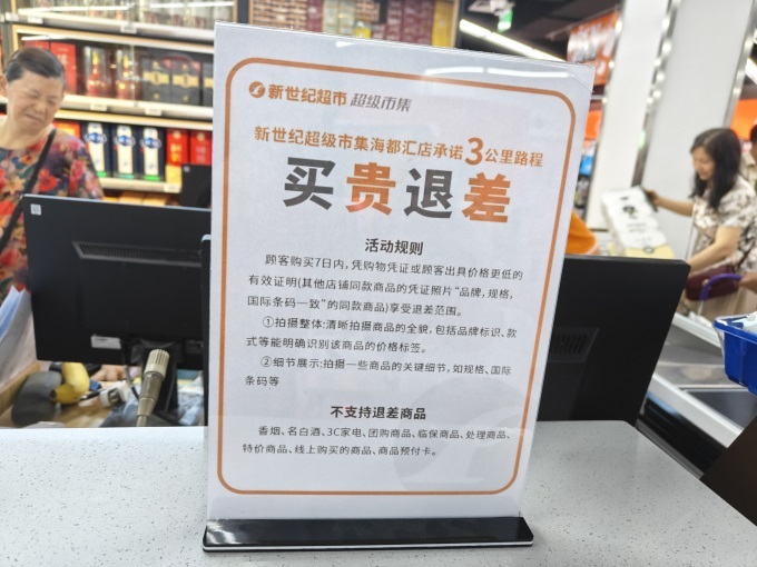 項目負(fù)責(zé)人稱,生鮮折扣店不會做傳統(tǒng)促銷,而是實施天天平價,每天都是一個價,讓每一個顧客都不會買貴。在超級市集渝北店,筆者看到店內(nèi)掛著“天天低價,歡迎比價”海報,還看到標(biāo)有三公里“買貴退差”承諾,由此可以看出超級市集以價格為競爭力的決心及自信。