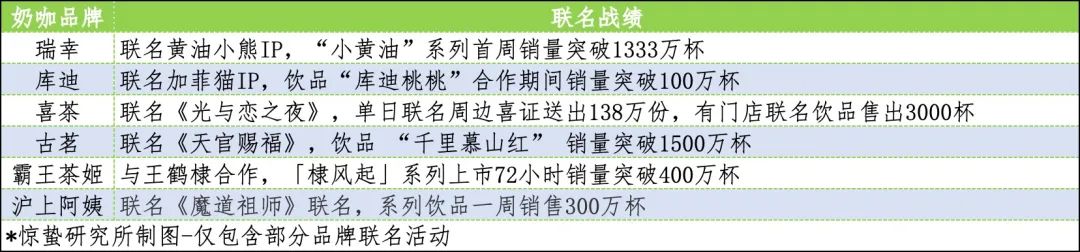 *部分奶咖品牌聯(lián)名活動(dòng)及銷量情況