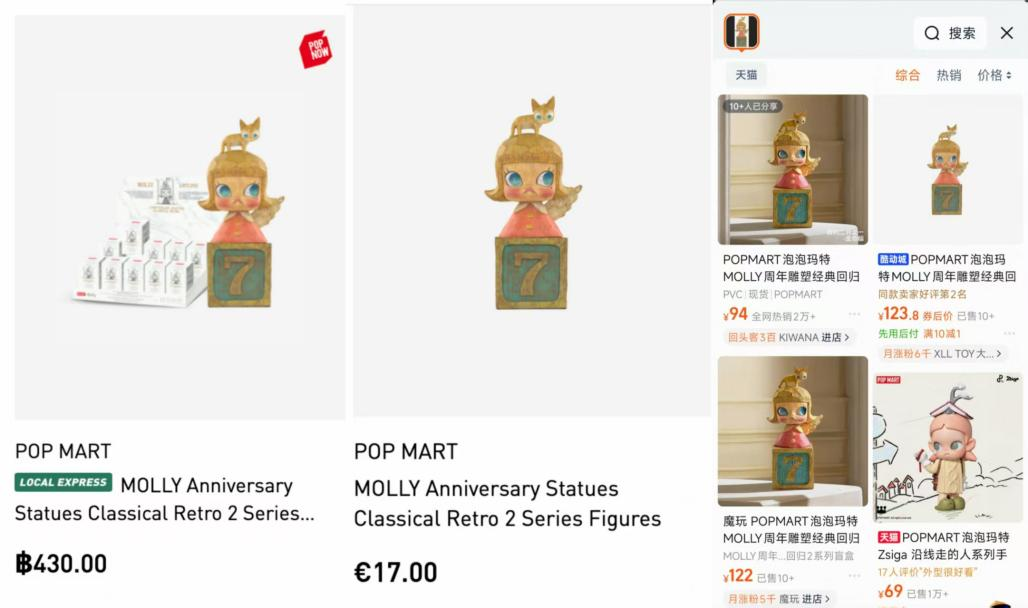 圖:泡泡瑪特產(chǎn)品售價對比 資料來源:泡泡瑪特官網(wǎng)、天貓,36氪整理
