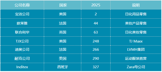 制表:零售圈 數(shù)據(jù):2025《財富》世界500強