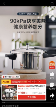 繼炒鍋之后,蘇泊爾還針對小家庭開發(fā)出直徑僅18cm-20cm小口徑壓力鍋。2023年產(chǎn)品再度引爆拼多多,成為又一個千萬級熱銷款。