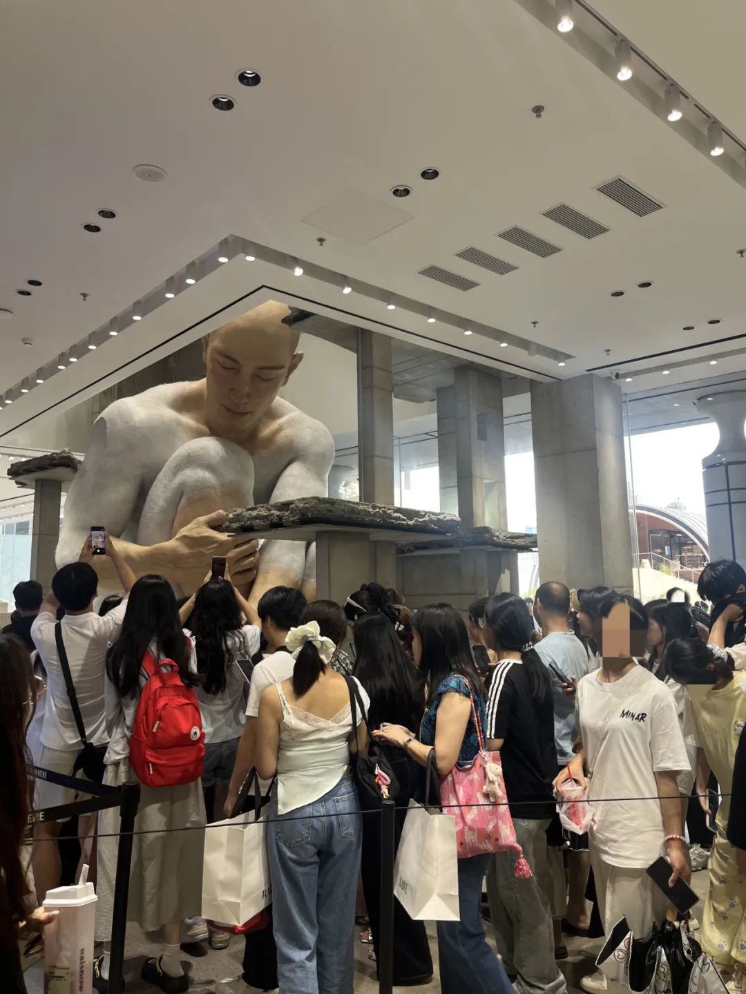 自去年“巨人展”進(jìn)駐,直到近期,即使是工作日,北區(qū)的巨人展都有不少人排隊(duì)打卡,整個(gè)區(qū)域的人氣非常高,水廣場(chǎng)也是人來人往。
