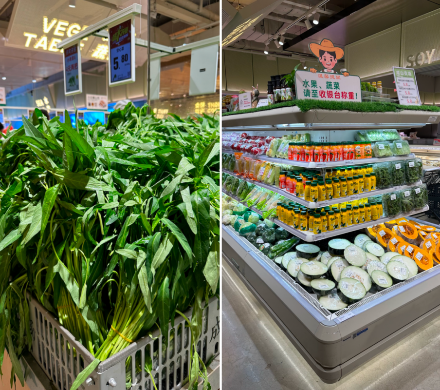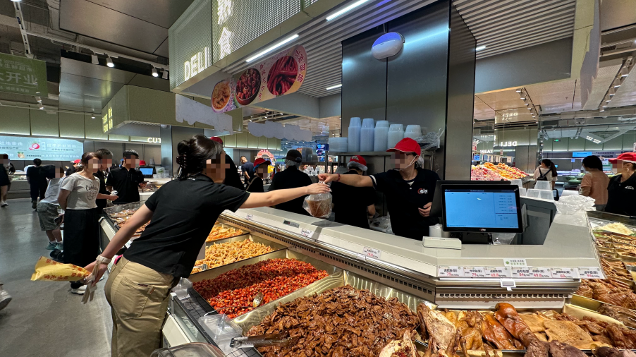 我們認為現(xiàn)場感很重要:烤腸現(xiàn)烤、面包現(xiàn)烘,顧客能看到制作過程,買完菜順手帶份熟食,這比單純賣菜粘性強太多。