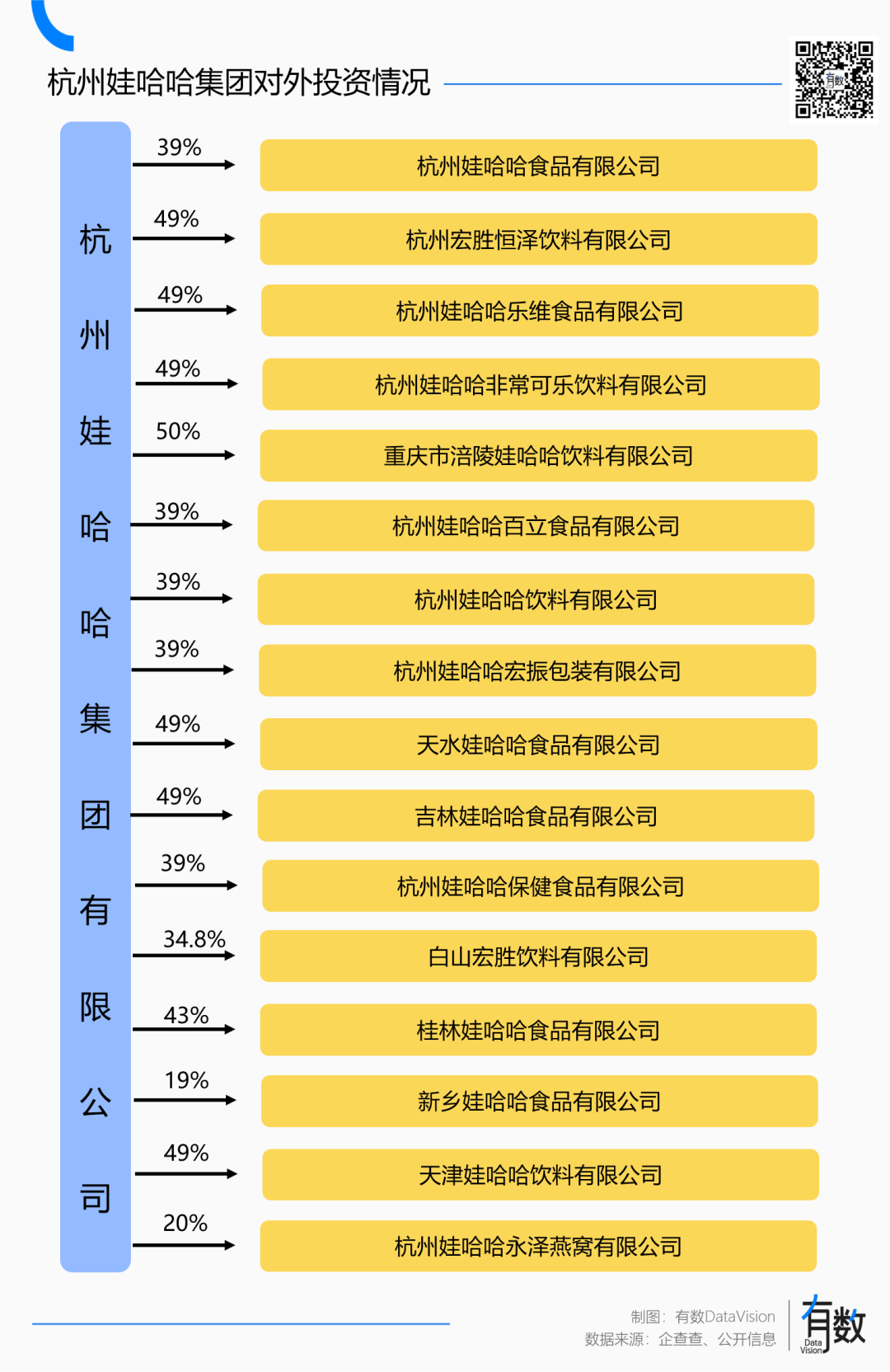 2007年,宗慶后又成立了宏振投資,由自己100%持股,直接對外投資公司30家,其中包含娃哈哈集團(tuán)旗下5家公司,均通過51%的持股比例,掌握了絕對控制權(quán)。