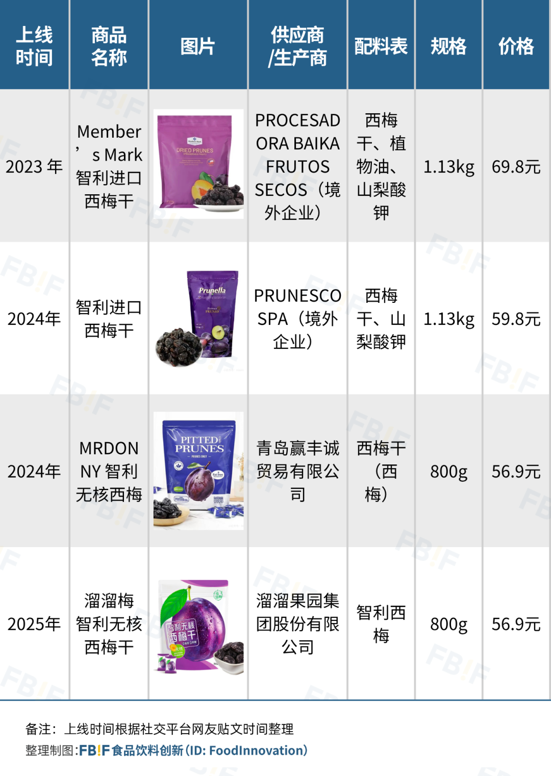 從生產(chǎn)信息來(lái)看,這兩款產(chǎn)品均是由境外企業(yè)生產(chǎn),均屬于進(jìn)口商品,其中,Member’s Mark西梅干由“PROCESADORA BAIKA FRUTOS SECOS”生產(chǎn),Prunella西梅干由“PRUNESCO SPA”生產(chǎn)。