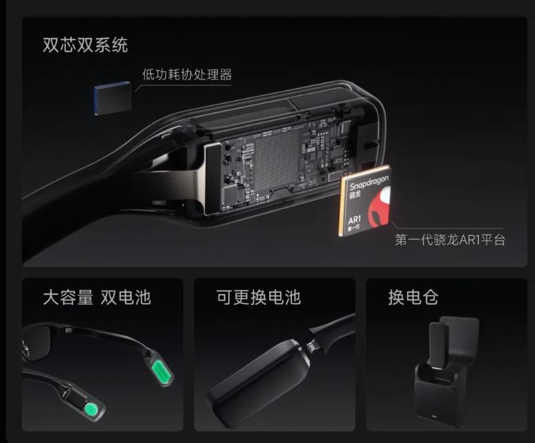 “趣解商業(yè)”注意到,很多公司都在通過(guò)研發(fā)和功能調(diào)整,保證續(xù)航、性能和重量的綜合提升。例如,“亮亮視野”的“Leion Hey2”款A(yù)R眼鏡,通過(guò)砍掉非翻譯功能、自研低功耗操作系統(tǒng)等,整機(jī)續(xù)航達(dá)到了96小時(shí);小米和阿里正在通過(guò)“雙芯片”方案,將處理器分為兩個(gè),盡可能平衡性能與功耗。