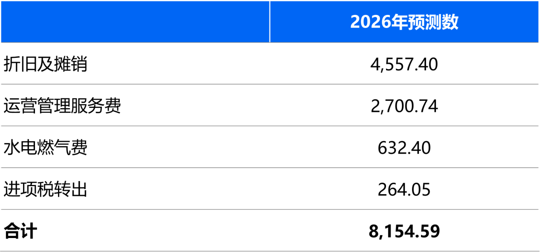 但由于項目整體合作模式發(fā)生了較大的變化,因此過往的成本結(jié)構(gòu)對未來項目的參考意義不大。觀察項目2026年的營業(yè)成本預測,其結(jié)構(gòu)已經(jīng)變成了如下模式: