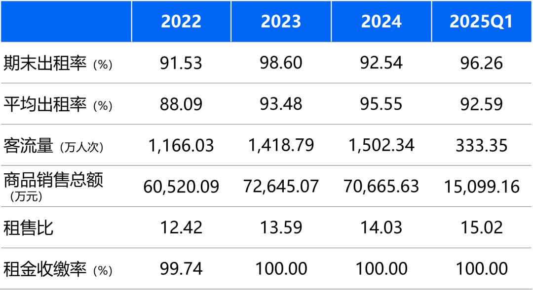 從上表可以看出,從2022年至2024年,項目的整體客流量逐年走高,反映出了商圈的逐漸成熟。但是無論是總銷售額、出租率,原本的增長趨勢都在2024年轉(zhuǎn)向下行。
