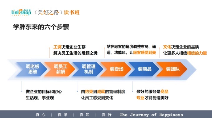 通過這三年的學(xué)習(xí),我們也做了總結(jié),學(xué)習(xí)胖東來主要有六個步驟。