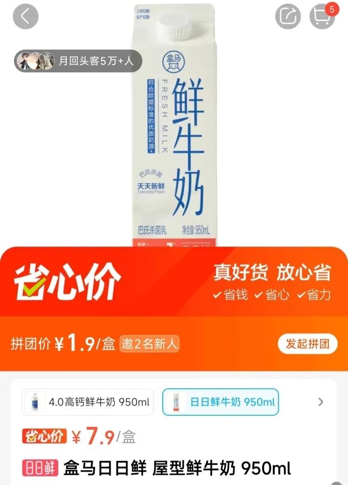 作為對比,筆者在盒馬鮮生網(wǎng)頁上查到了當(dāng)日生產(chǎn)的鮮牛奶,如下: