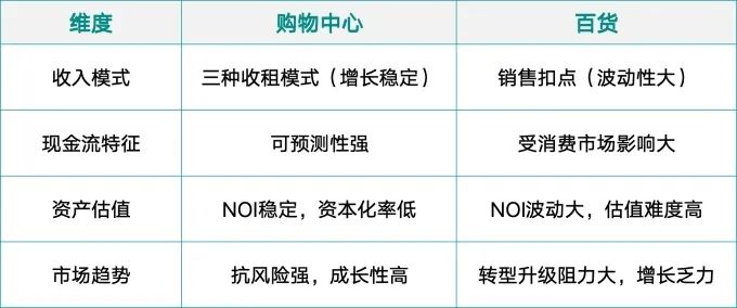 其實(shí),比較一下百貨與購物中心這兩種經(jīng)營形態(tài),可以得出如下結(jié)論: