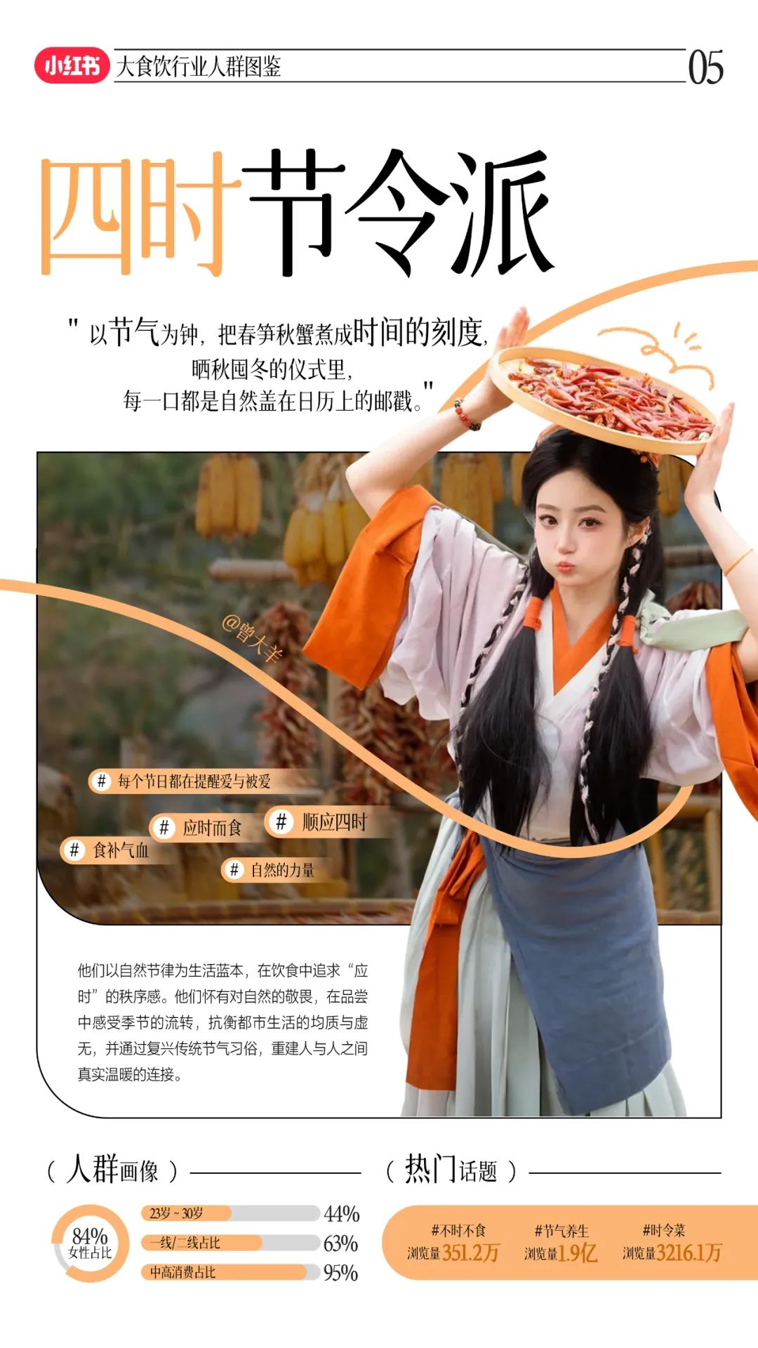 進一步看,山緩緩結(jié)合小紅書“心品”敘事平臺的屬性,即年輕、高線城市、高學(xué)歷人群占比較高,對美食品質(zhì)、差異化和生活方式有一定追求,是典型以“悅己”情緒驅(qū)動消費的人群,以差異化的產(chǎn)品和品質(zhì)為錨點,通過差異化的內(nèi)容精準(zhǔn)觸達這類人群。