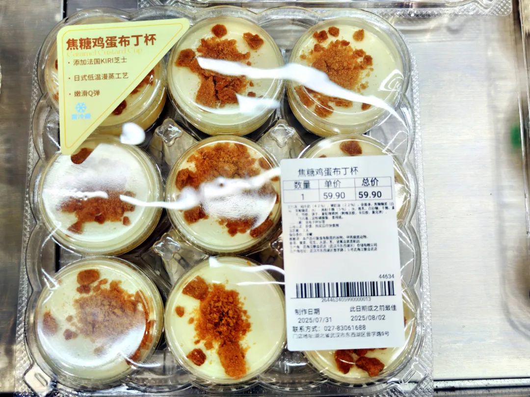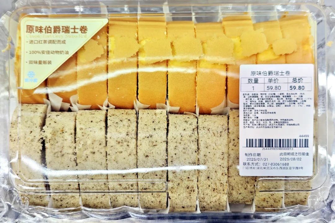 還有對(duì)標(biāo)山姆人氣單品的「江豚優(yōu)選」自有商品,如開心果堅(jiān)果棒、黃油華夫餅、牛肉餡酥脆餅干等特色零食,及原味伯爵瑞士卷、焦糖雞蛋布丁杯、榴蓮大福等烘焙產(chǎn)品。而此類「學(xué)習(xí)之作」,產(chǎn)品名稱都未做絲毫改變。