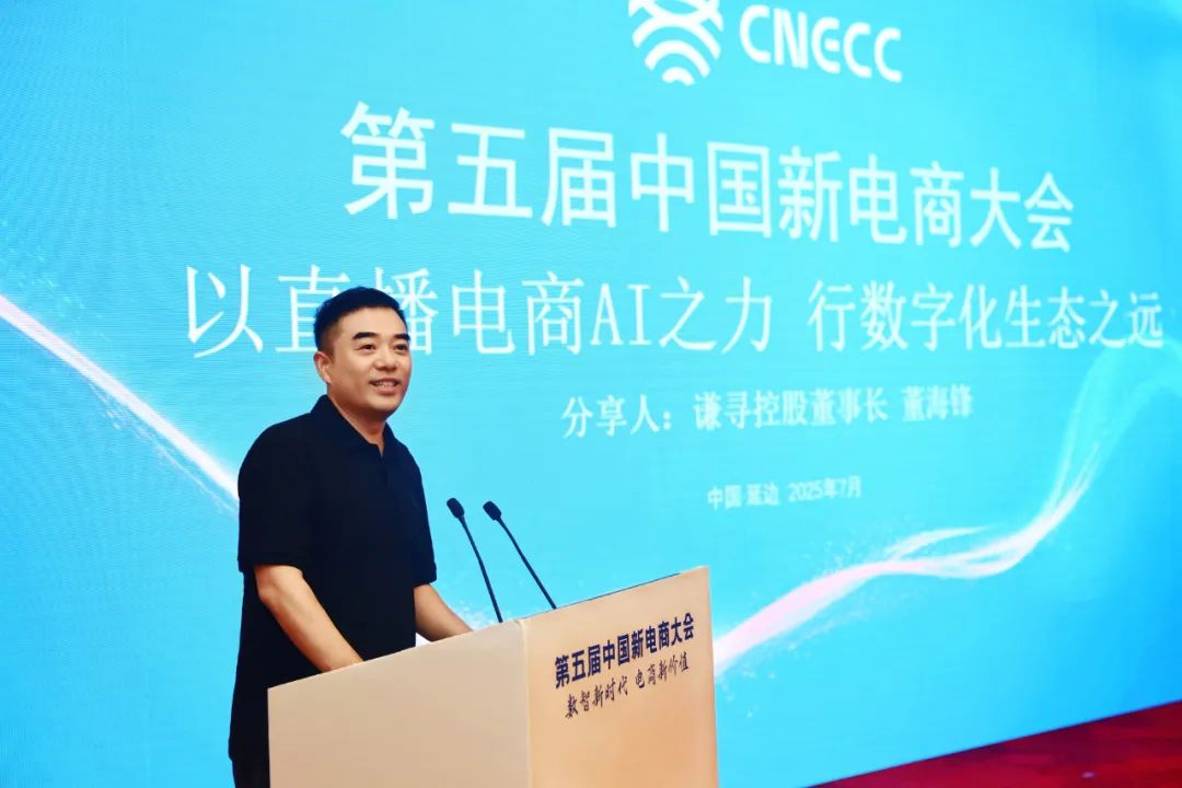 正巧,上周的中國(guó)新電商大會(huì),董海鋒以謙尋董事長(zhǎng)的身份發(fā)表演講。他談到AI技術(shù)與直播電商的融合,也提出直播電商要“更高效、更規(guī)范”。