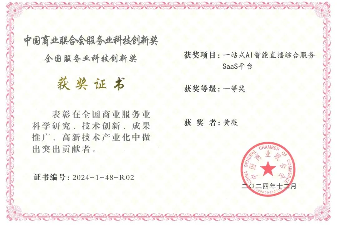 值得注意的是,這一系統(tǒng)已獲得中國(guó)商業(yè)聯(lián)合會(huì)的認(rèn)可,并斬獲服務(wù)業(yè)科技創(chuàng)新獎(jiǎng)一等獎(jiǎng),獲獎(jiǎng)?wù)呤寝眿I。