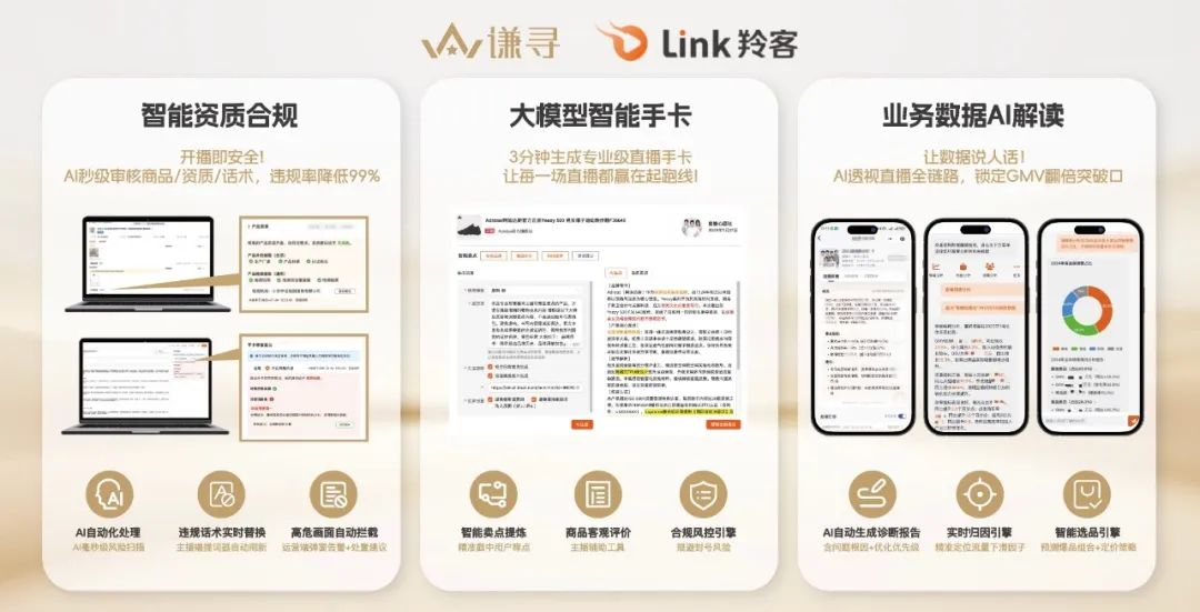 在這一趨勢(shì)下,薇婭背后的謙尋顯得頗具代表性。薇婭轉(zhuǎn)向幕后,這家公司卻沒有消耗舊流量,而是轉(zhuǎn)向更“硬核”的系統(tǒng)建設(shè):2019年上線的羚客系統(tǒng),最初只是用于提升選品效率、比對(duì)價(jià)格的工具,如今已升級(jí)為涵蓋趨勢(shì)預(yù)測(cè)、合規(guī)審核、腳本生成的AI平臺(tái)。