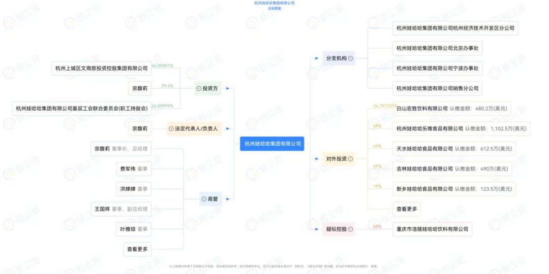 而后的宗慶后高舉保護(hù)民族企業(yè)的旗幟,通過(guò)非合資公司將達(dá)能趕出娃哈哈的商業(yè)版圖,這或許是娃哈哈建立體系外公司的最初原因。愛(ài)企查顯示,宗氏家族執(zhí)掌的“娃哈哈系”境內(nèi)公司目前已經(jīng)超過(guò)200家,這些公司大多圍繞娃哈哈產(chǎn)業(yè)鏈開(kāi)展工作,但大多與上城區(qū)國(guó)資并無(wú)股權(quán)關(guān)聯(lián)。